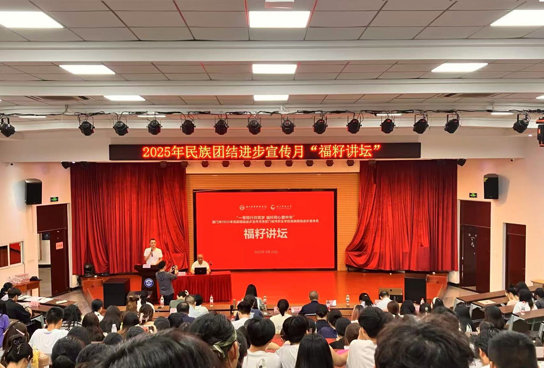 9月24日,我校举办2025年民族团结进步宣传月“福籽讲坛”专题讲座,特邀厦门市民族与宗教事务管理局一级调研员唐淮水处长作题为《开展民族团结进步宣传教育 做好高校铸牢中华民族共同体意识工作》的专题讲座。思明区委统战部陈玮婧、张红、俞杰,学工处、各党总支负责人,各党总支组织员,新入职教师,辅导员老师,学工处、统战部相关工作人员,以及各二级学院各民族学生代表等约200余人参加讲座。